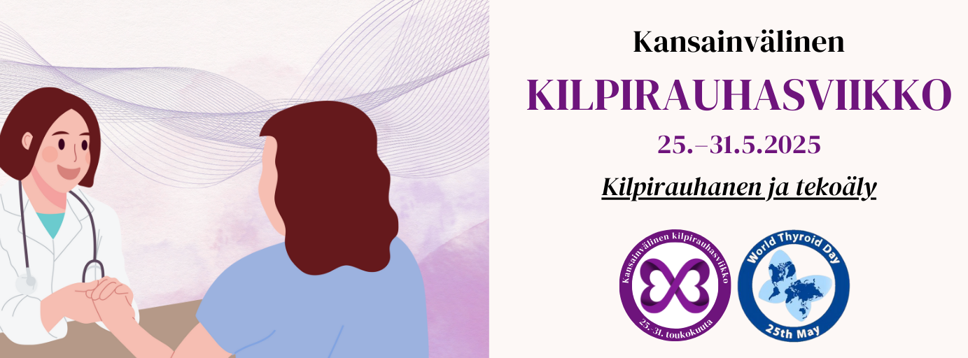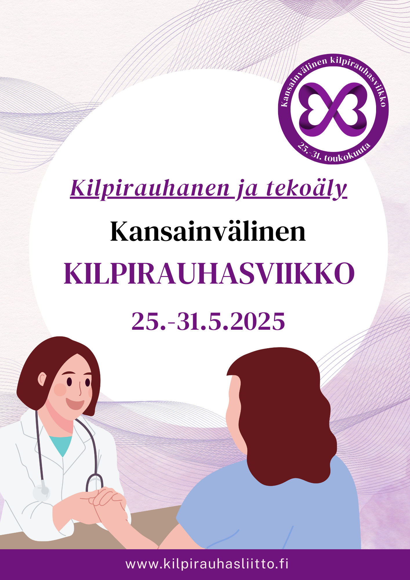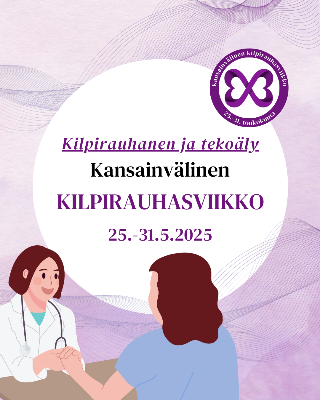 Kansainvälistä kilpirauhasviikkoa vietetään 17. kerran 25.–31.5.2025. Viikon teemana on tänä vuonna kilpirauhanen ja tekoäly. Viikon aikana teema näkyy sosiaalisen median kanavissamme sekä jäsenyhdistysten tapahtumissa ympäri Suomen.